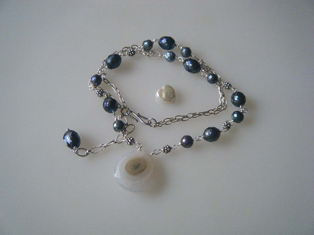 材料 ドロップ型のソーラークオーツ 淡水パールカットの大と小 シルバー925チェーン