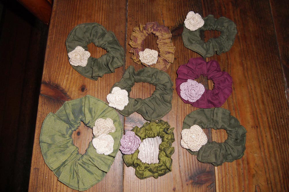 母がこちらに来た時に、一緒に冬用にモヘアの毛糸でバラの花のヘアゴムを作ったら可愛いかも・・・