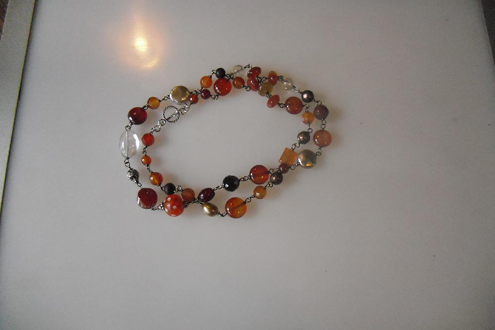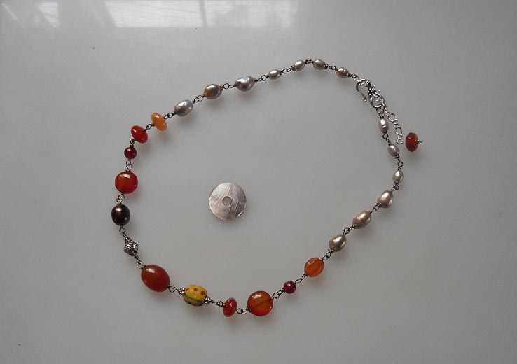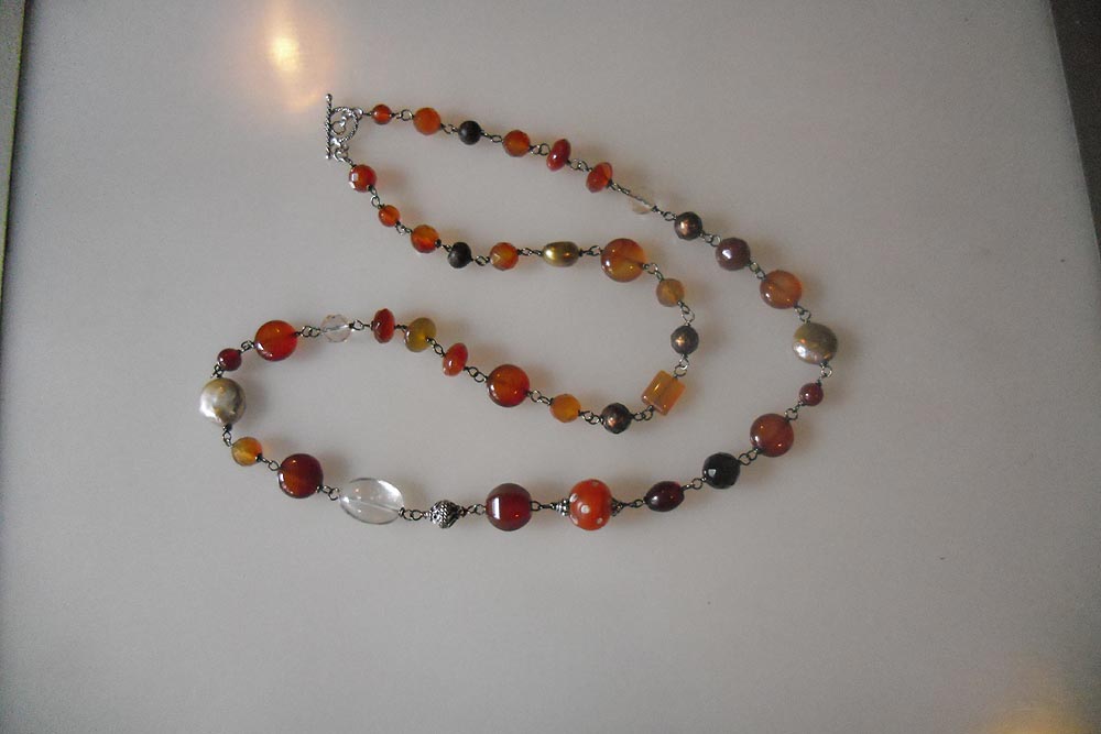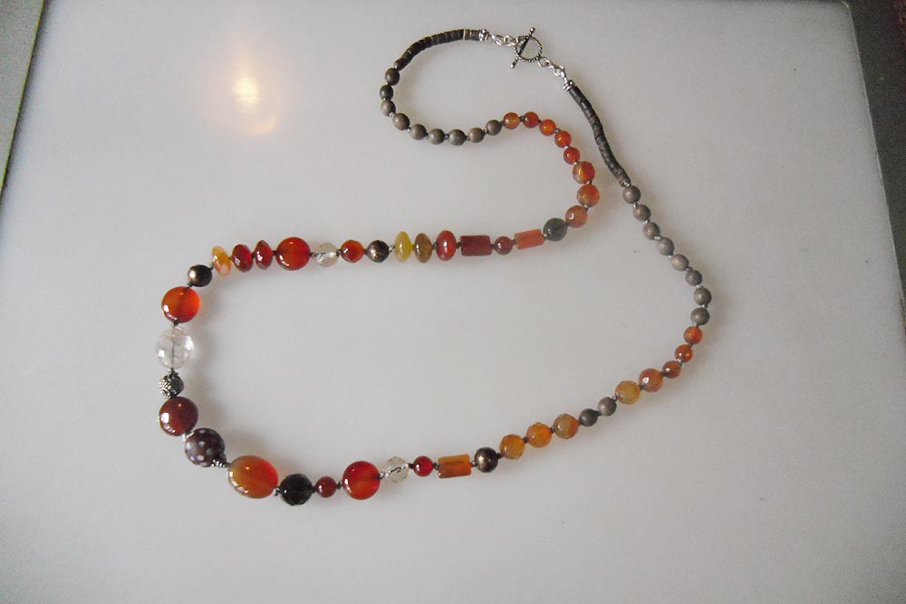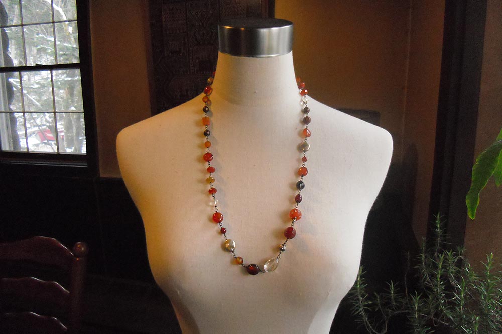 カーネリアンを中心にルチルクーツ・スモーキークオーツ・淡水真珠・シルバー925