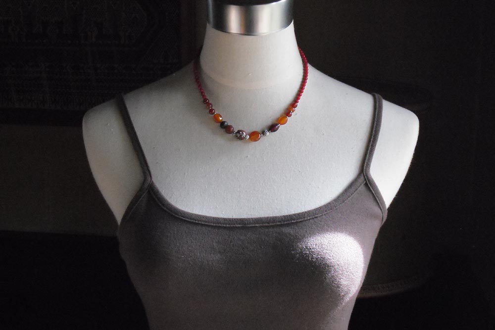 期せずして、赤い天然石でセミロングネックレスを作って欲しいと、、