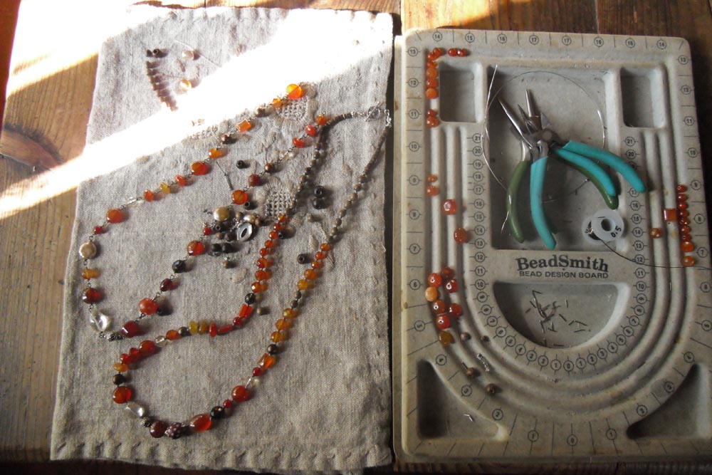 元気が出る明るい色のネックレスを何点か作る予定で、赤や黄色のアンティークのビーズを購入しました。