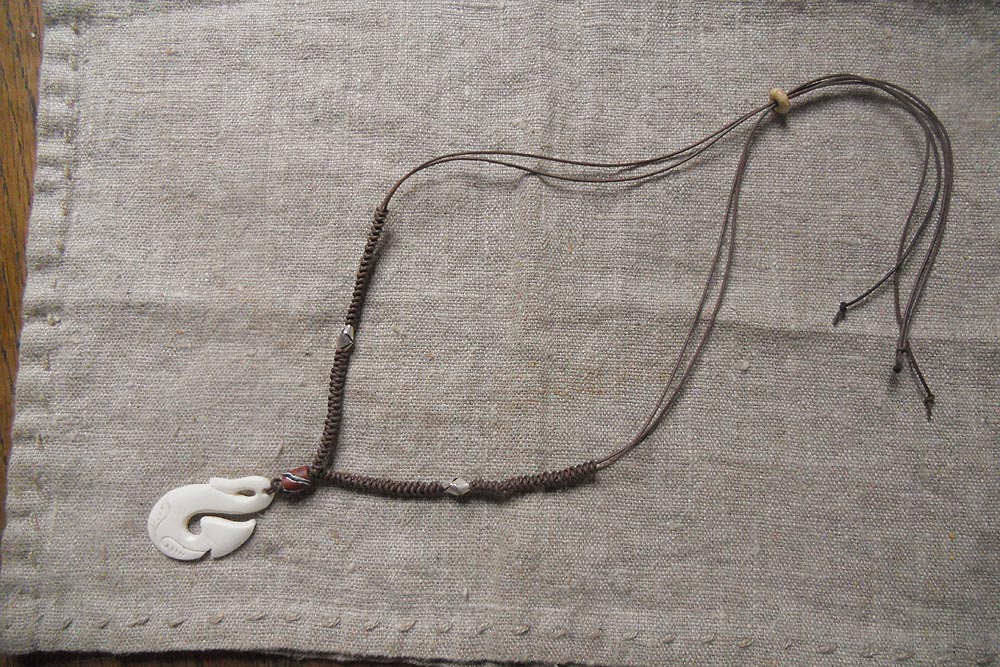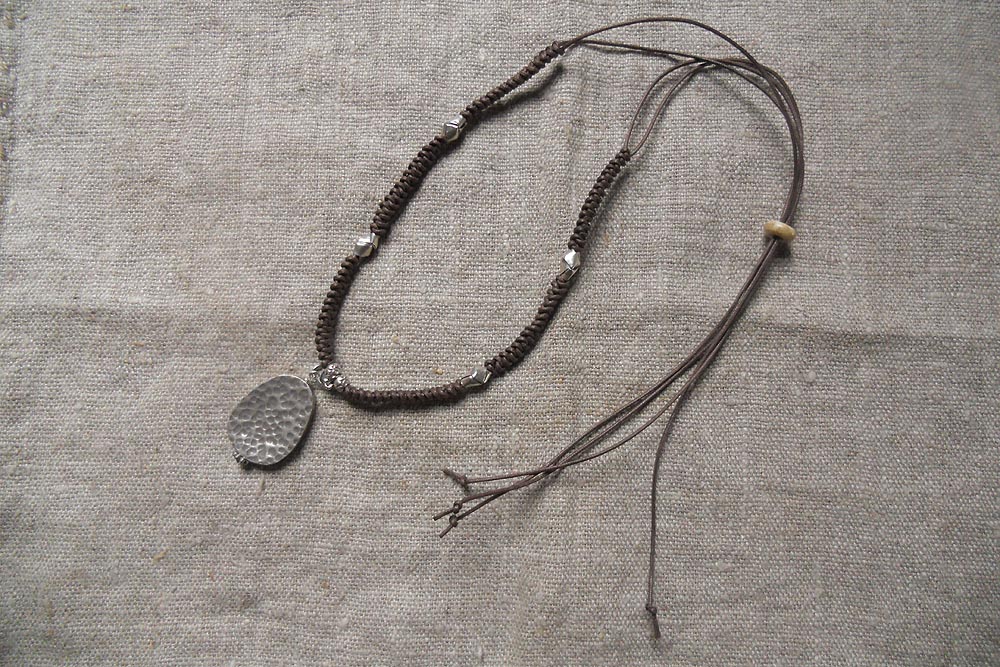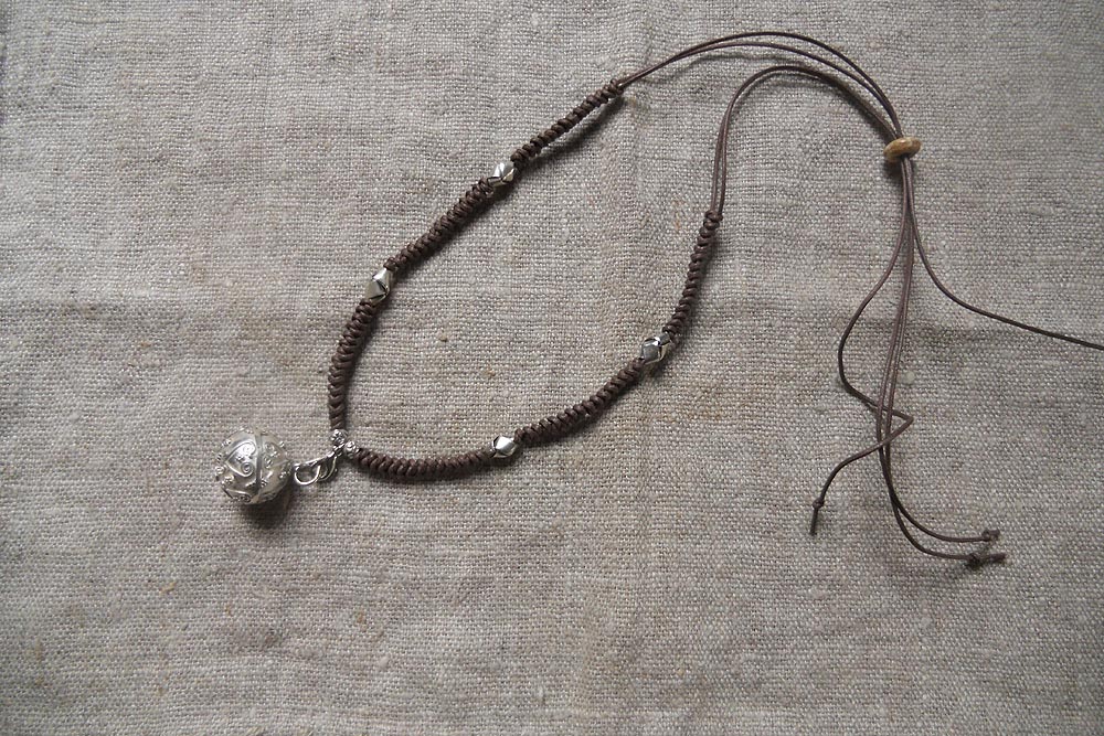 こちらはオーダーでお作りしたものです。シルクの太いグリフィン糸でノット(結ぶ)でつないであります。