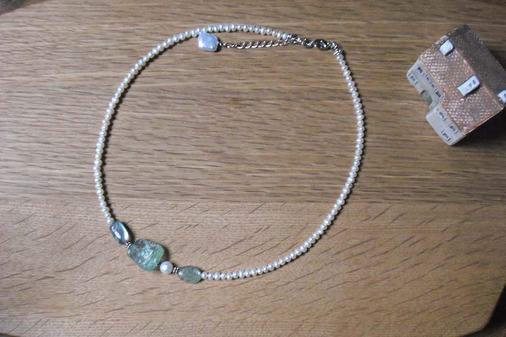※ローマングラスをアクセントに使った繊細なショートネックレス