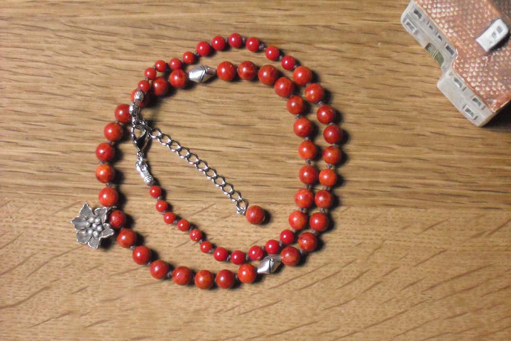※カレンシルバーとサンゴのショートネックレス