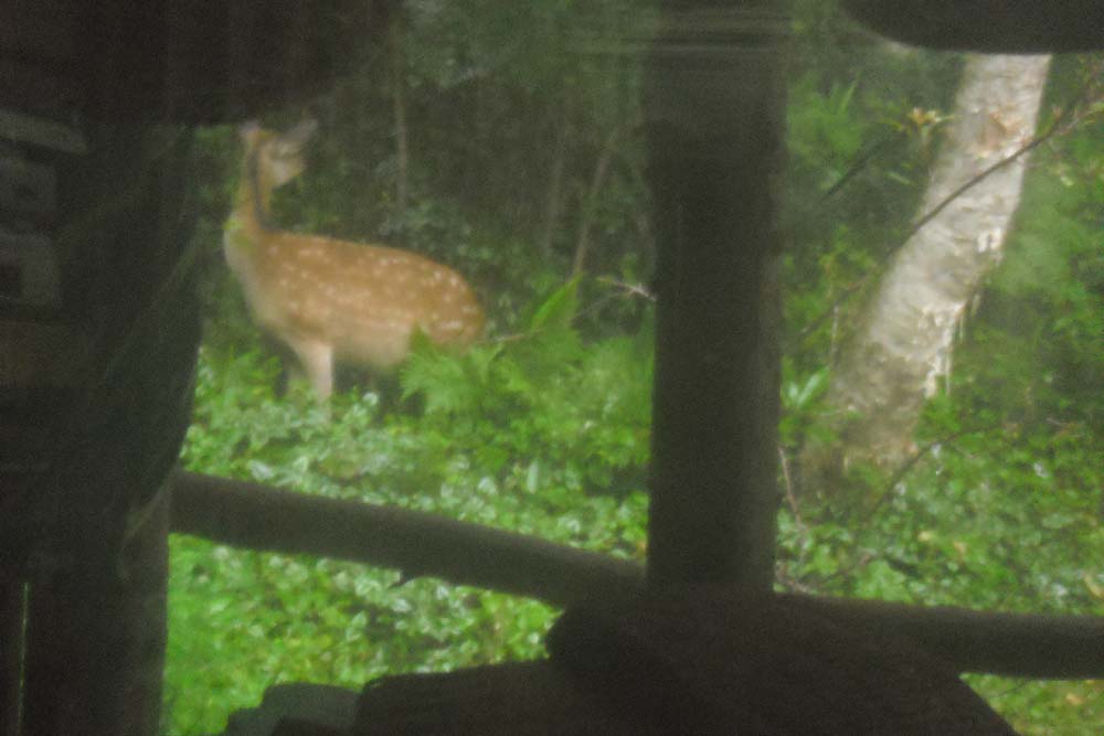 昨日は昼間から、雨の中小鹿が客室の前で草をはんでいました!!ビックリ。