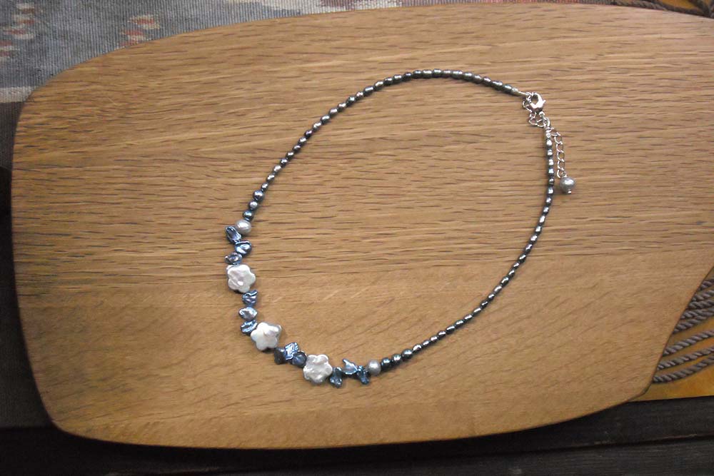 淡水真珠・グレイの花ショートネックレス