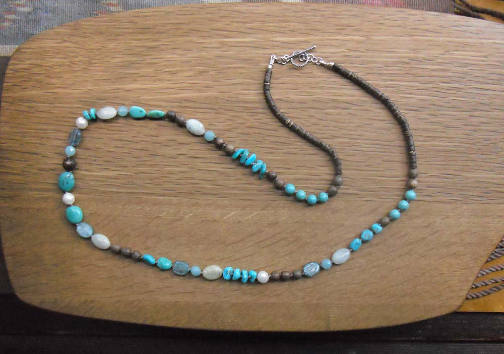 ターコイズ(トルコ石)とココナッツのセミロングネックレス