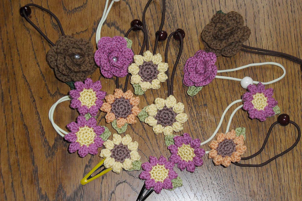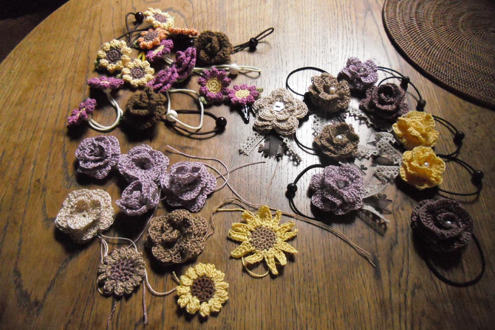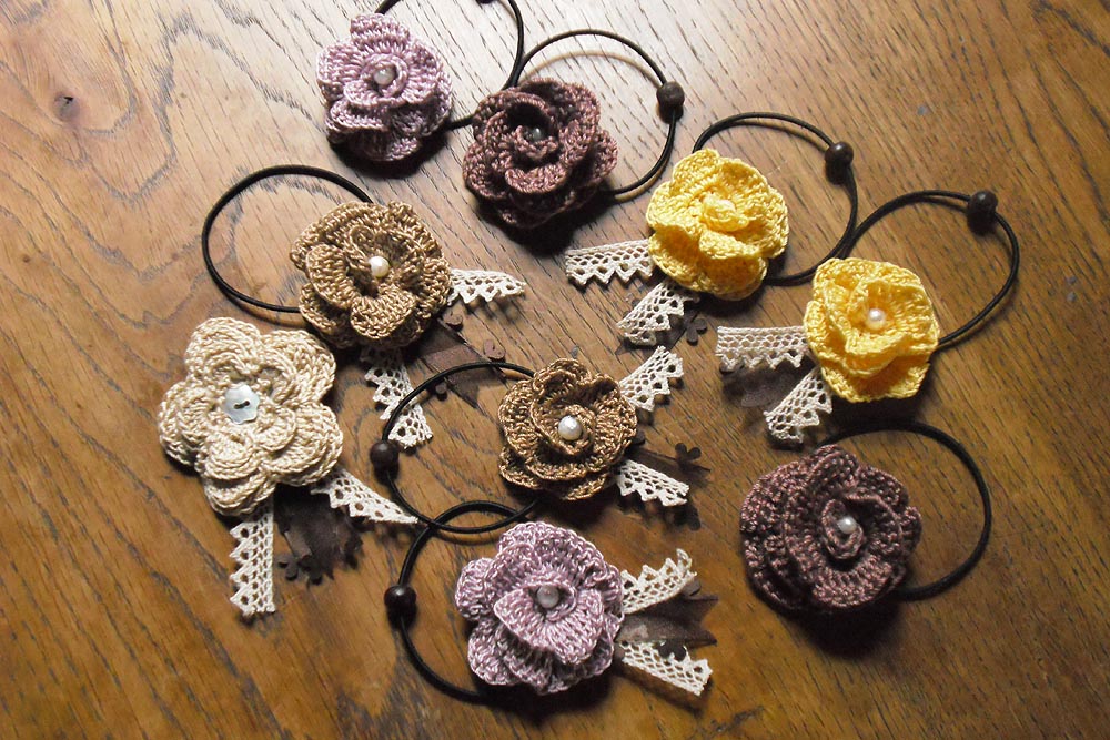 ヘアゴム、シュシュ、コサージュなどを一緒に作っています。