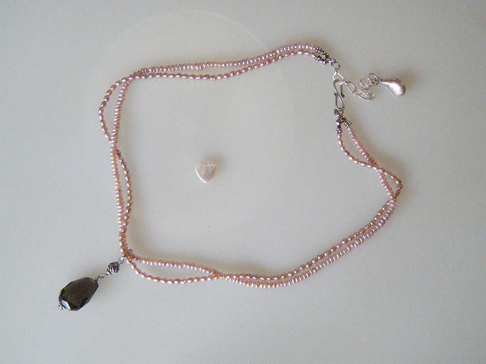 上 2連の極小淡水パールピンクにスモーキークオーツの