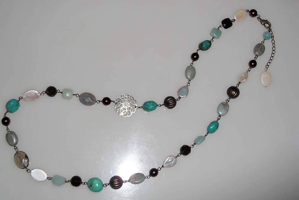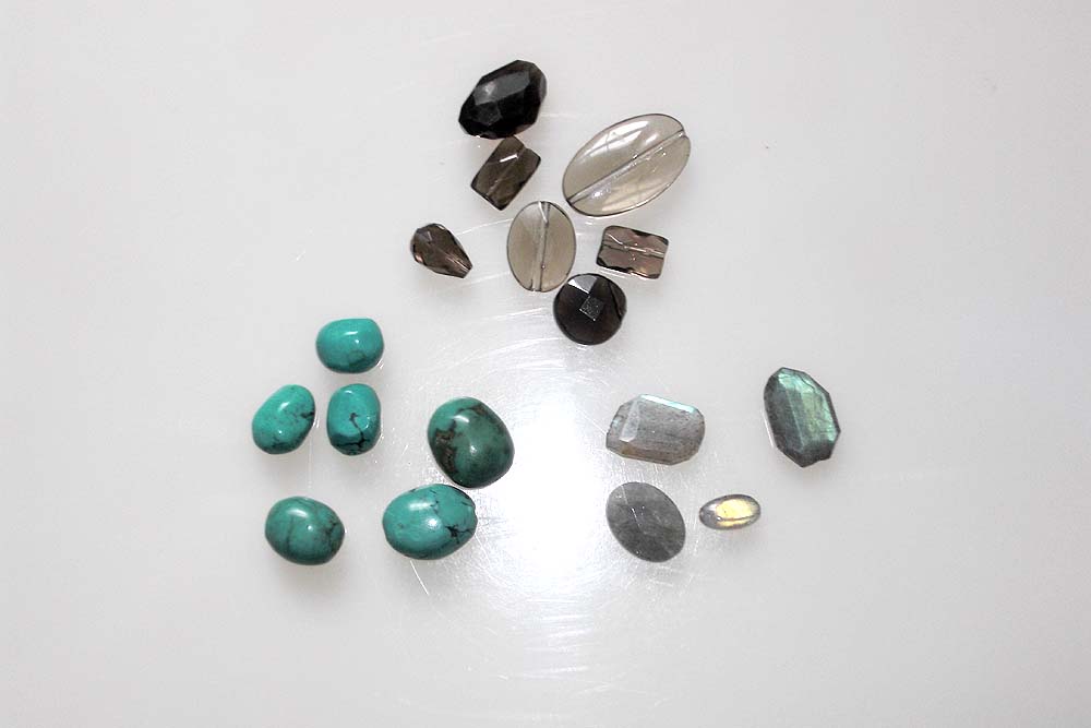 ※写真 上 トルコ石・ニュージェード・スモーキークオーツ・ラブラドライトなどの天然石