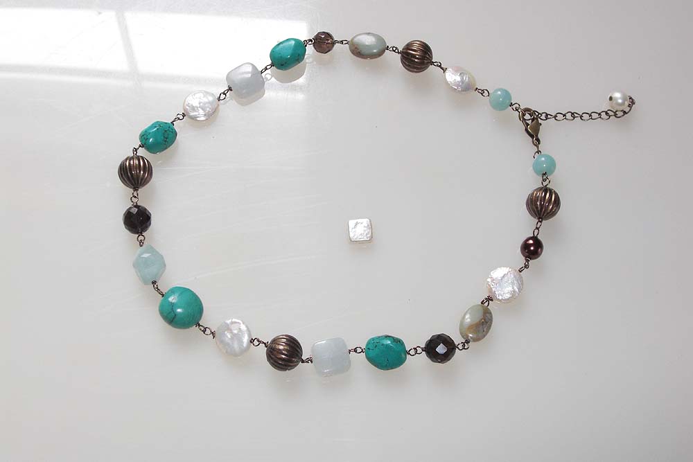 下 トルコ石・シェルのレースパーツ・淡水パール・ラブラドライト・スモーキークオーツ