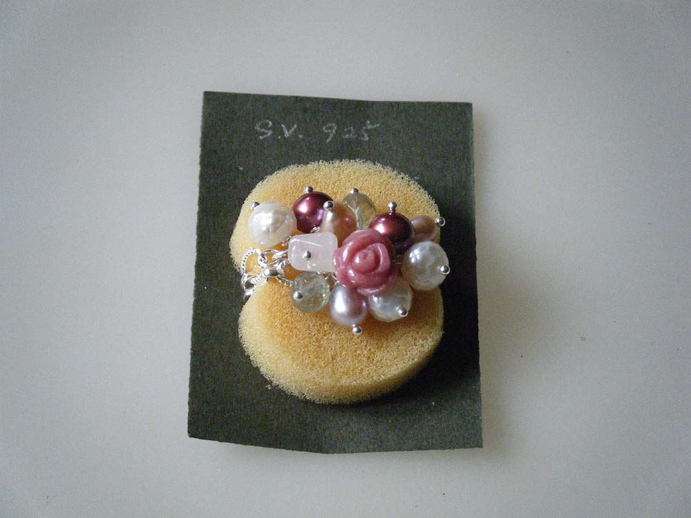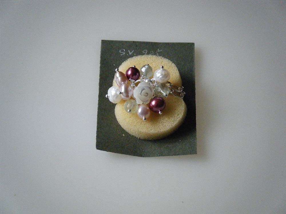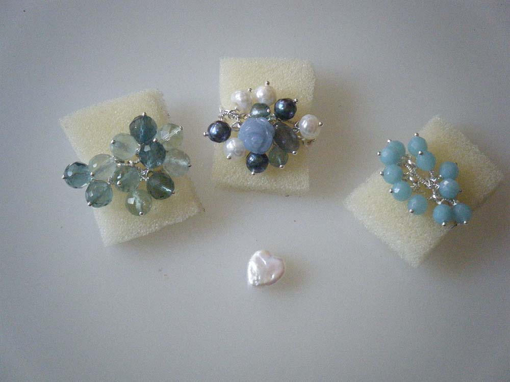 シルバー925ピンで淡水パールや天然石を留めつけています。