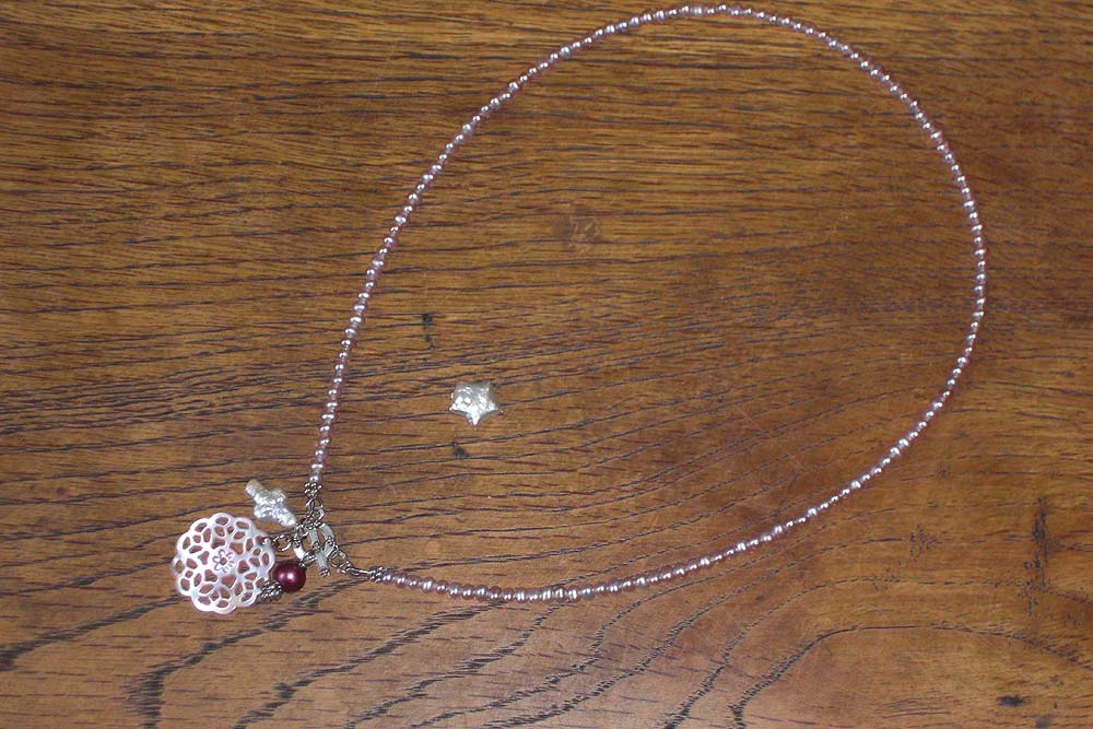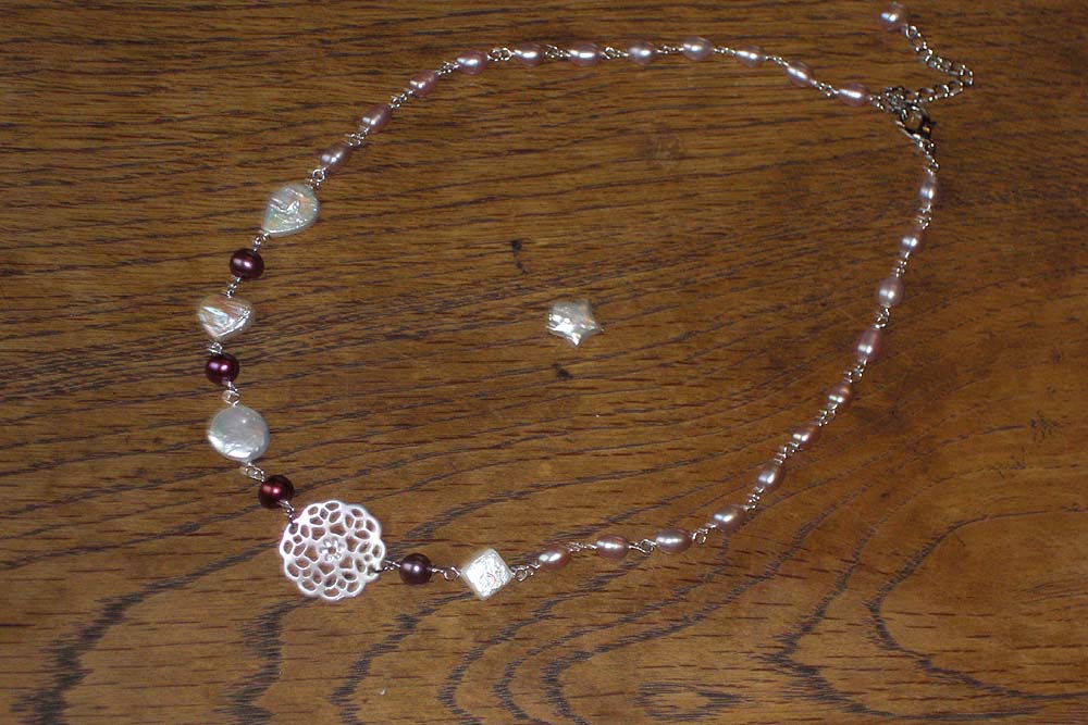 淡水パールのロングネックレスを作って欲しいとオーダーを受けました。