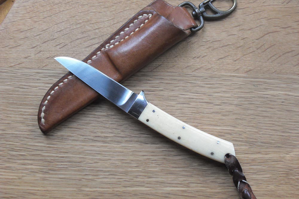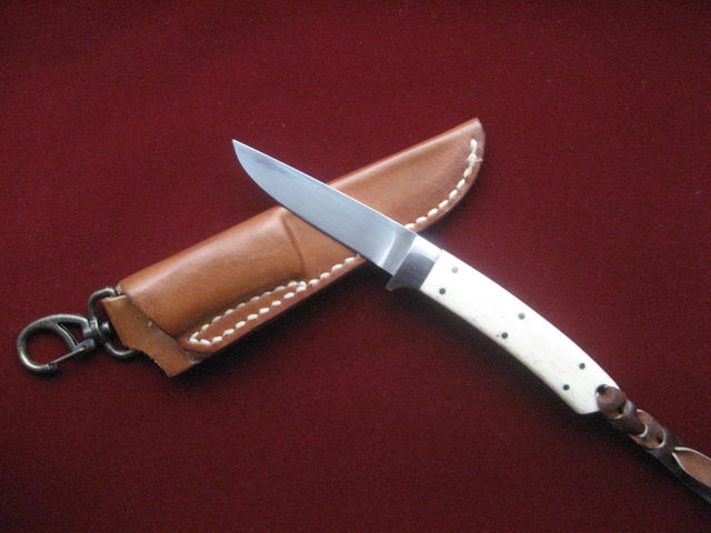 ※弟に作ってもらった鯨の骨のグリップのナイフです。