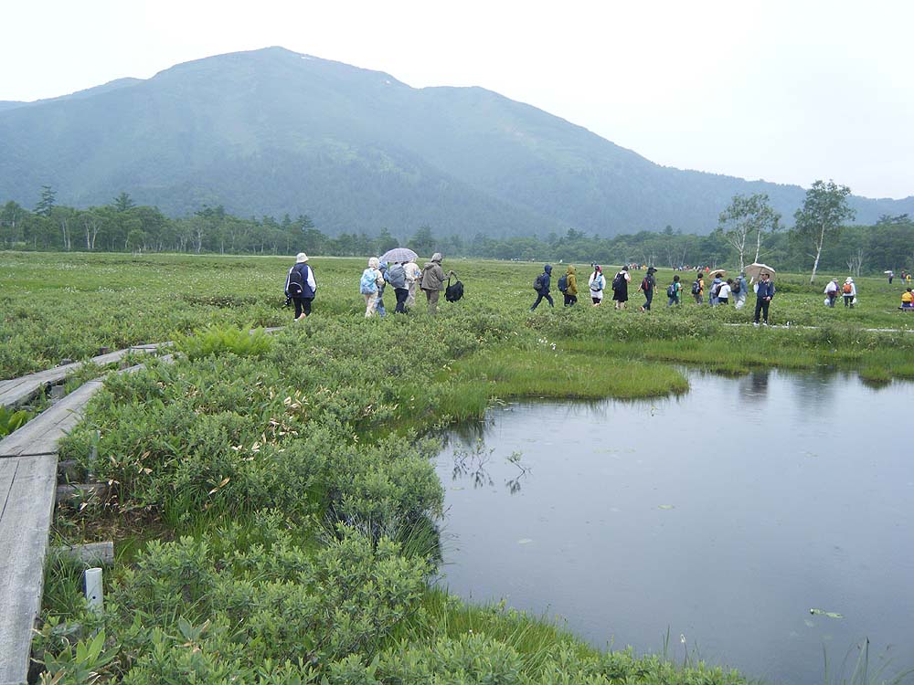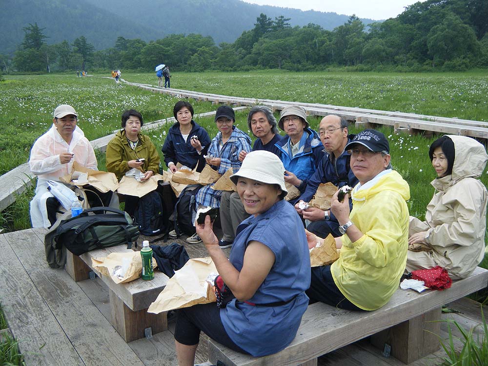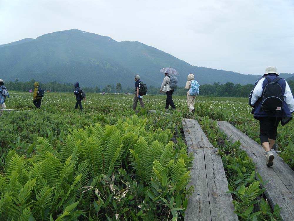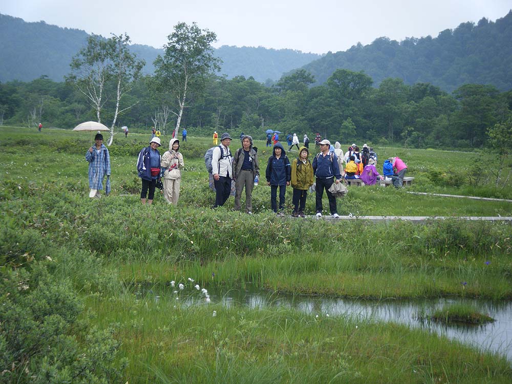 今日は小雨でしたが、ワタスゲが白く咲き乱れた美しい尾瀬を堪能しました。