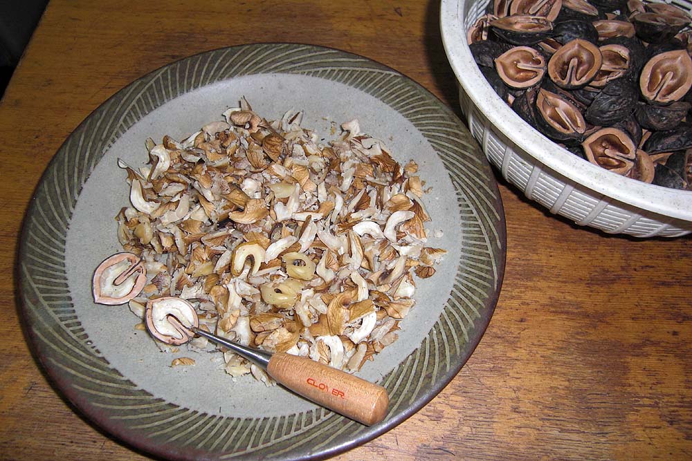 けっきょく大皿山盛り2杯のクルミが取れました。560gでした。