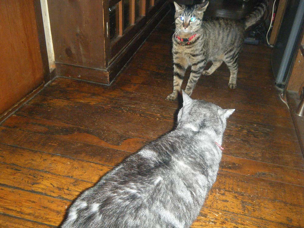 マオチャンは自分のテリトリーには入ってきた、新参者?をイカクしてます。