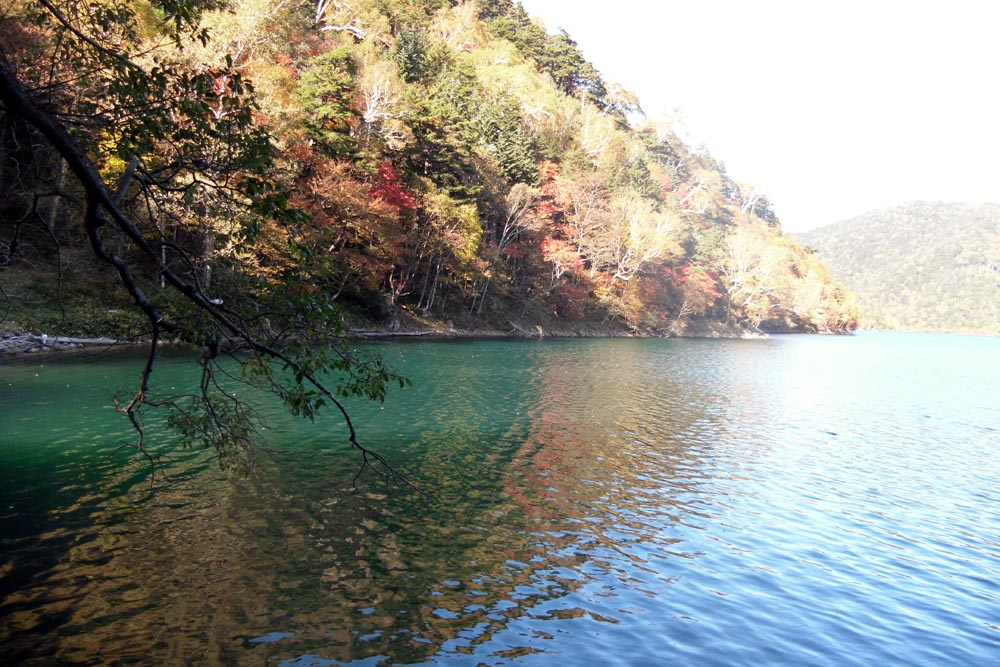 湖の周り、水面に近いあたりはきれいに紅葉していますね、