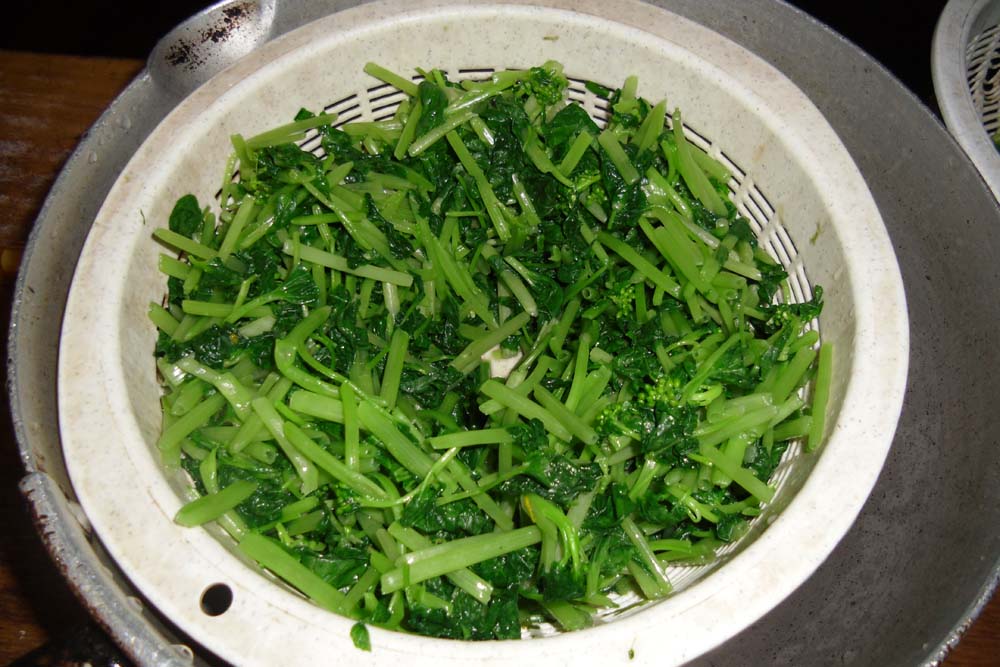 ザルにあげ、しばらくおいてしっかり水切りをする。