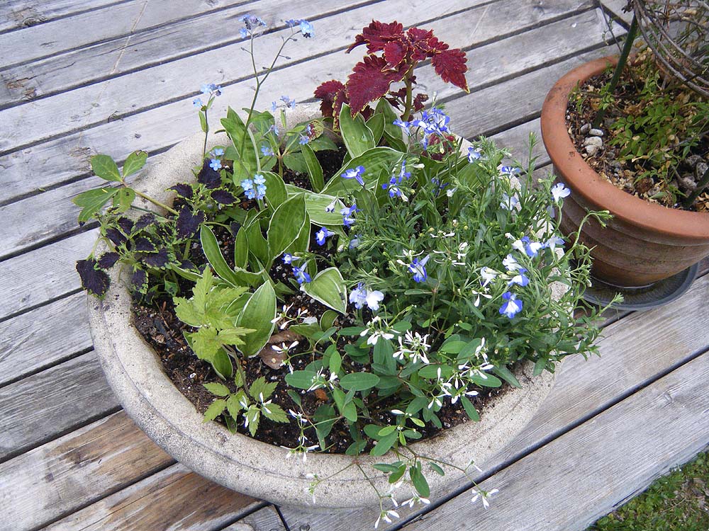 早速ベランダの大鉢に寄せ植えしました。
