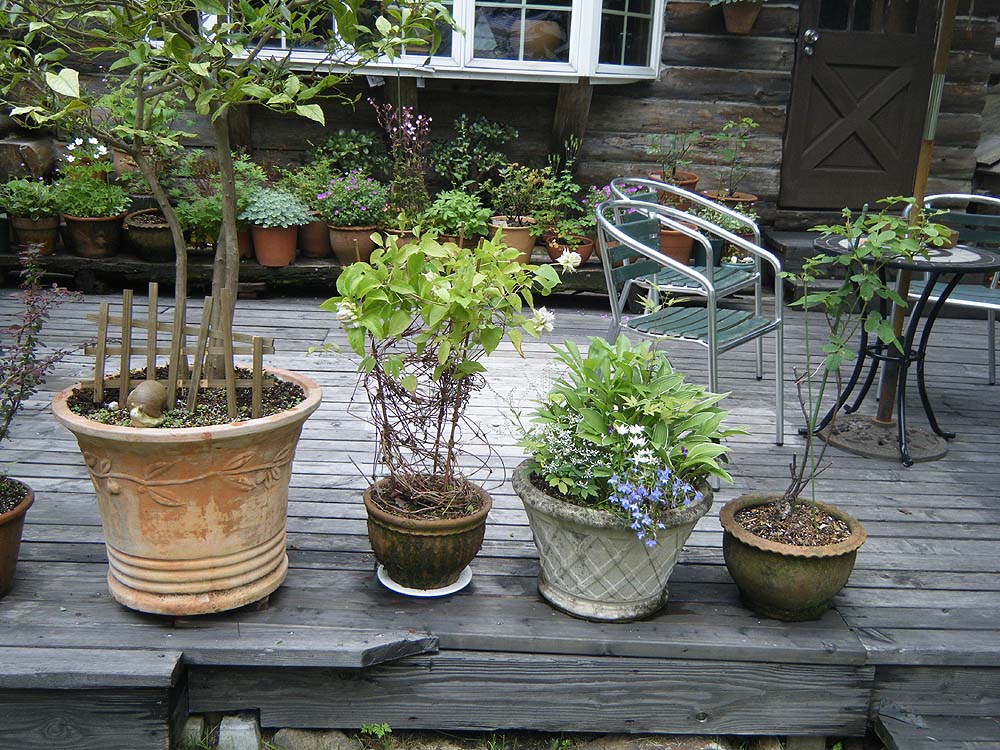 ベランダはケンちゃんちの木酢液に墨汁を入れて塗りなおしています。