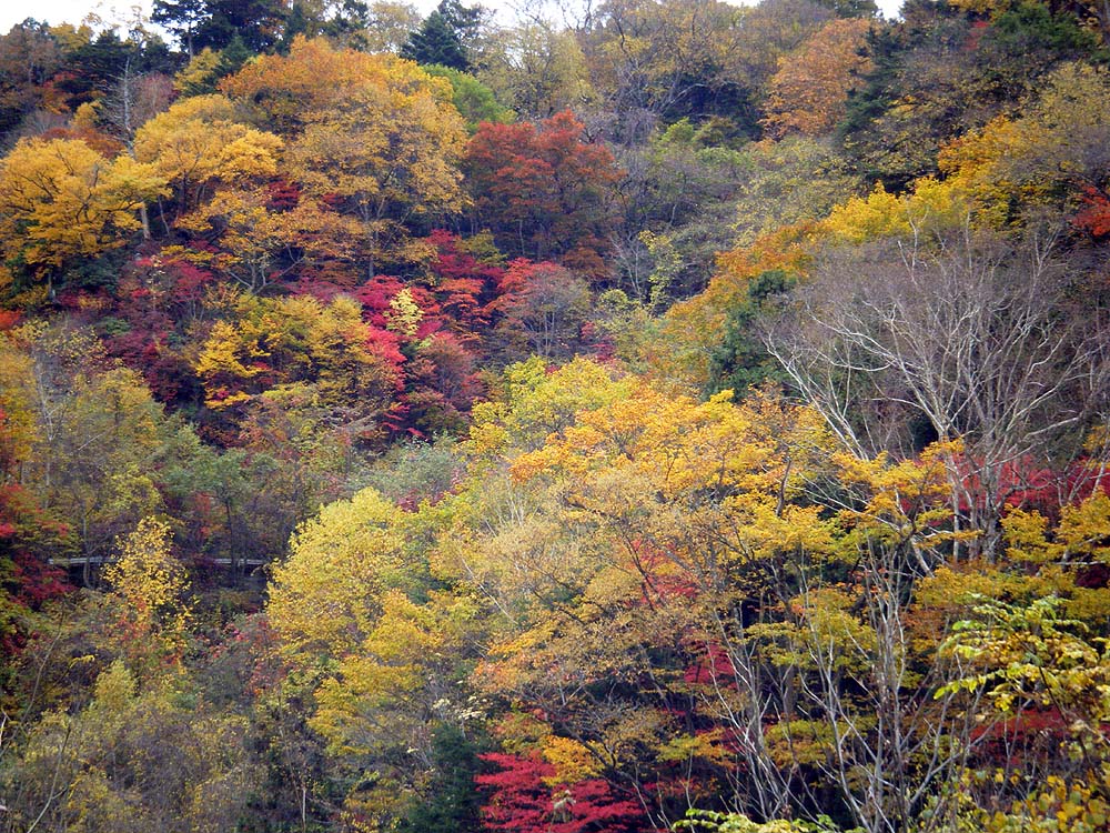 本当に今が一番キレイかもしれません、モミジ・ドウダンツツジの赤に、桂やミズナラ、ブナの黄色、