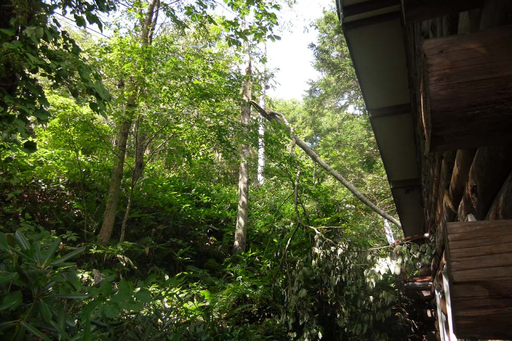 お風呂の横の木が折れて屋根の上にのしかかり、