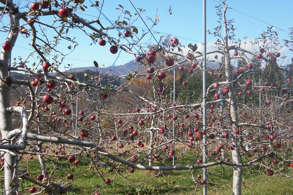 「りんごの出荷が終わったので、カゴ持って好きなだけりんごをもぎに来て」