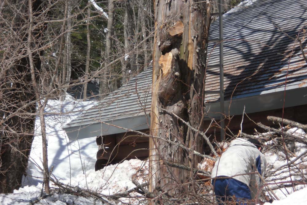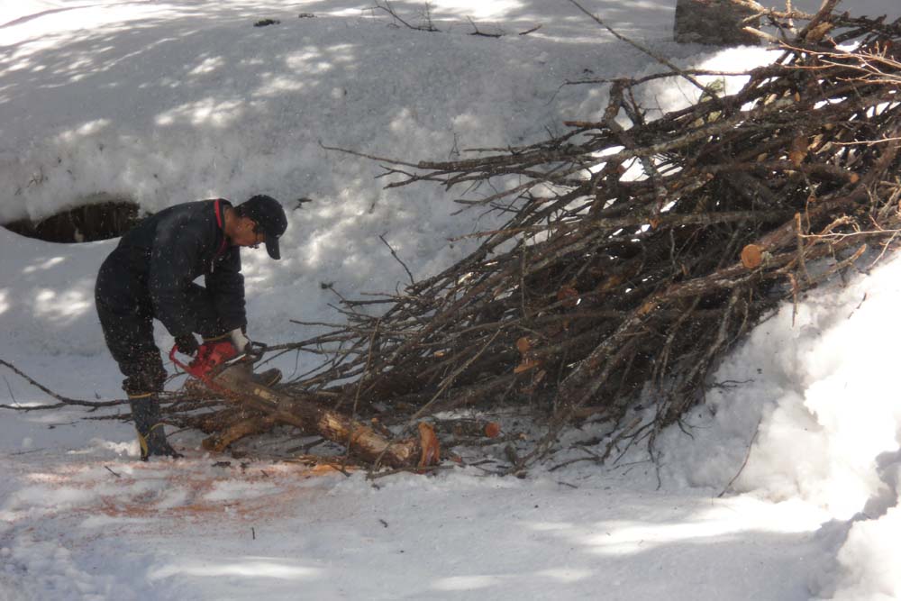 雪が沢山ある時のほうが、危険が少ないということで昨日作業にきてくれました。