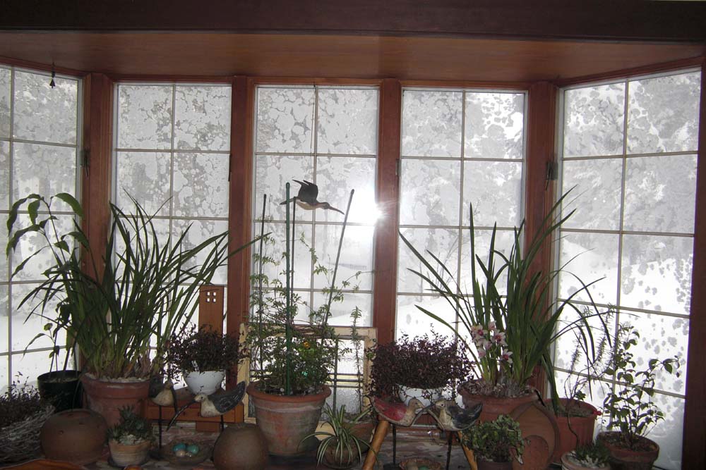 ※写真は風のため出窓に雪が張り付いて、外が見えません。
