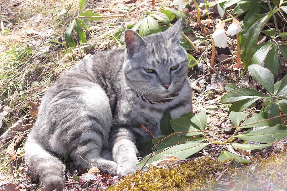 やっと顔をのぞかせたクリスマスローズの上でゴロゴロ。