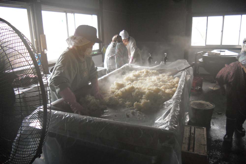 今日は蒸しあがったお米に麹菌を混ぜて、保温し発酵させるという工程までやりました。