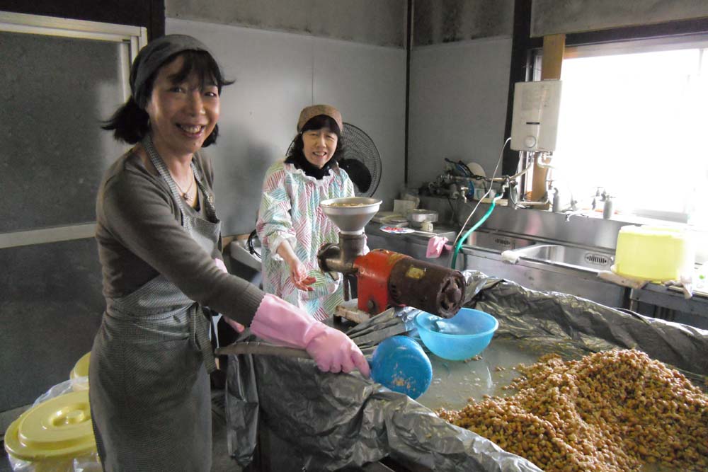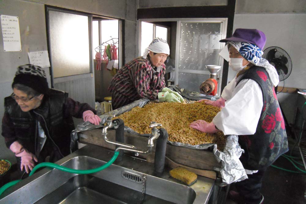 この味噌作りを仕切っているのが、平均年齢80歳弱のカオル・ノリピー・キヌエおばあさんと、