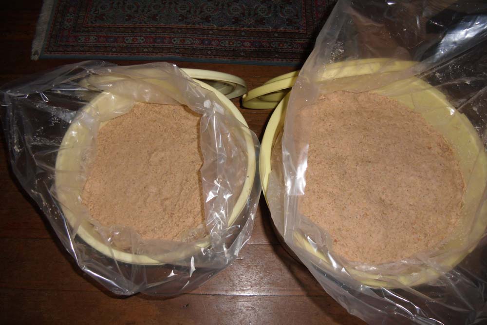 ① 材料 玄米15kg 大豆15kg 塩6.5kg これで60kg近くの味噌が出来ます。