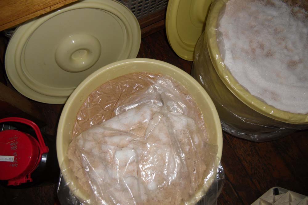 ⑧さてこれで仕込みは終了ですが、カビがはえないようにビニールできっちり覆って、