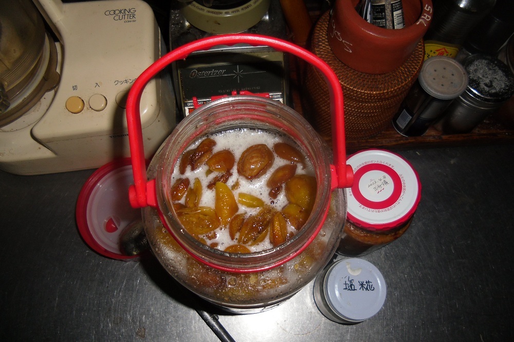 こうすることで、浸透圧で梅のエキス〈酵素〉が出てきます。