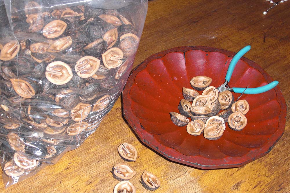 クルミの半割りのカラが大量に残った。
