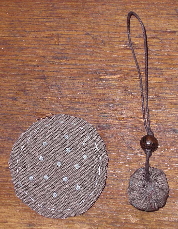 ③布を5.5cmの円に切り抜き、外から5mmのところをグシ縫いにする。