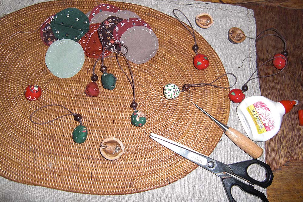 クリスマスツリーのオーナメントと携帯ストラップを作る事に。