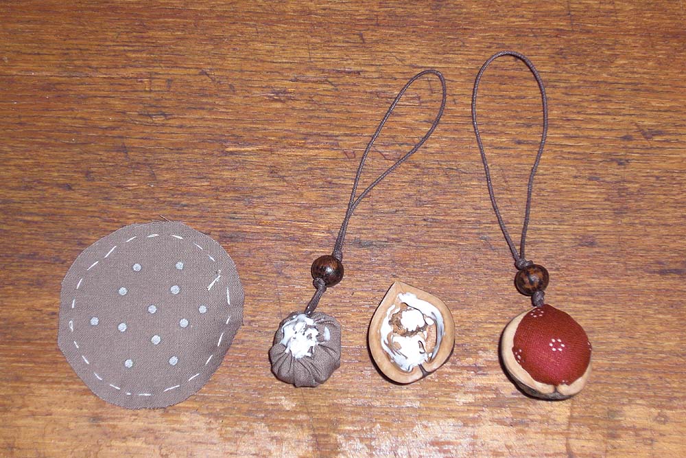 ④その中に化繊の綿をつめ、絞る。