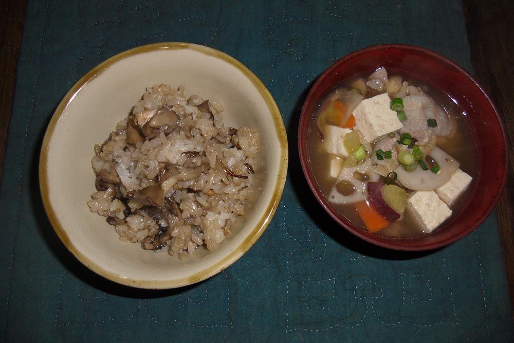 舞茸ご飯と豚汁という変則的料理をお出ししました。