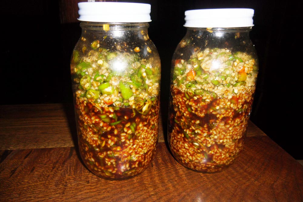 「簡単です、唐辛子1升・コウジ1升・醤油1升を漬け込んで1年寝かせるだけです」