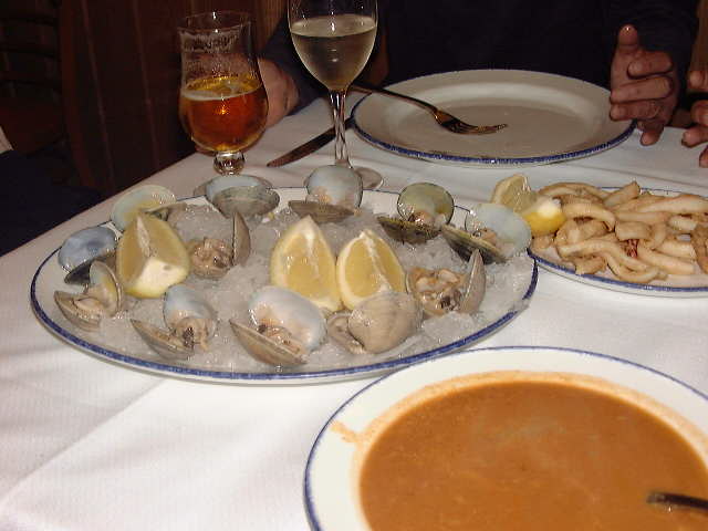 その内の1軒に「海の幸の盛り合わせ一人14ユーロ」という看板が、