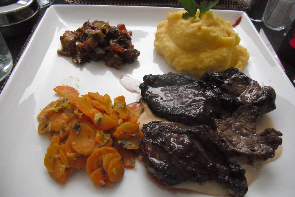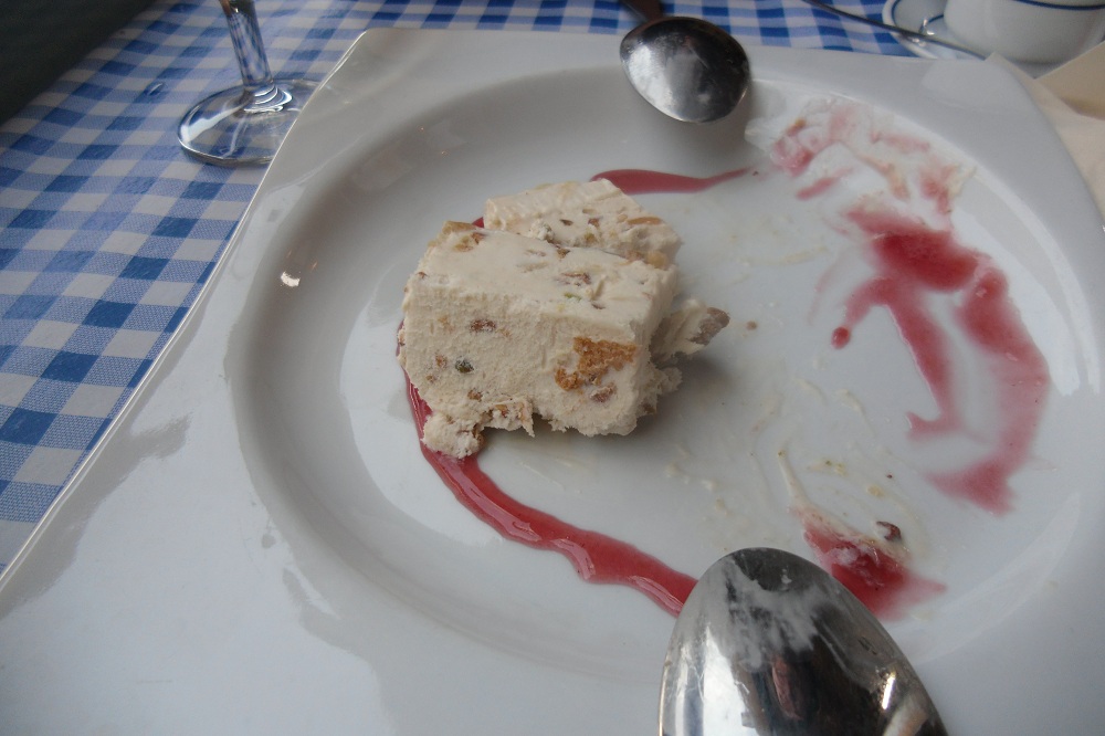 前菜・カキとメイン・仔羊のローストとデザート・クルミのアイスクリーム!!で18.5ユーロ。