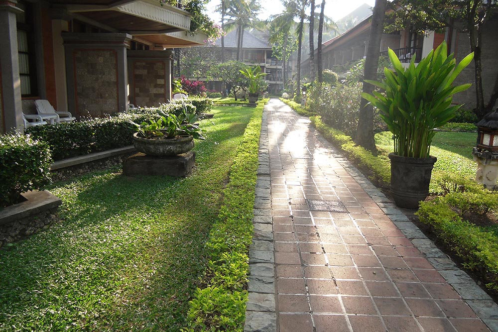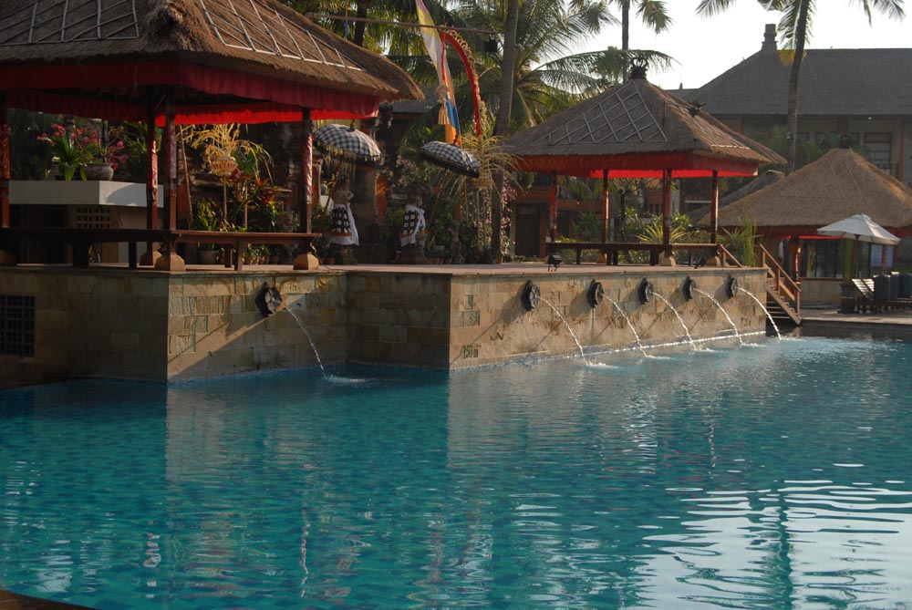 バリ風の広い庭も美しく、プールは3個、テニスコートもあり、