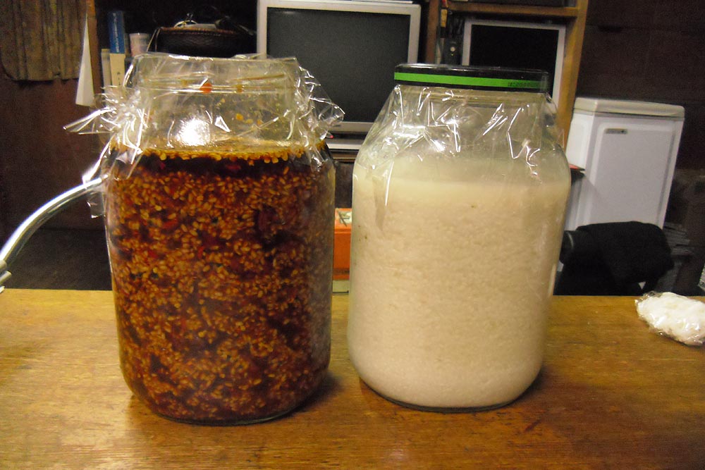 分量の水を入れよく攪拌して、瓶に移し暖かい場所で10日間くらい発酵させます。