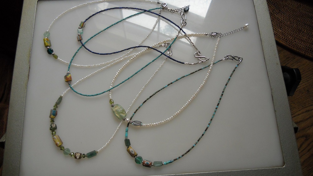 ◎ローマングラスのアクセサリーを7点作りました。