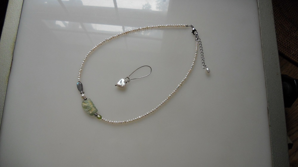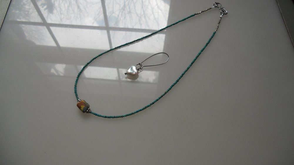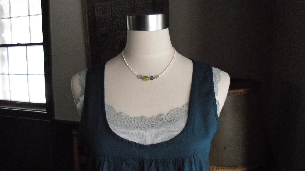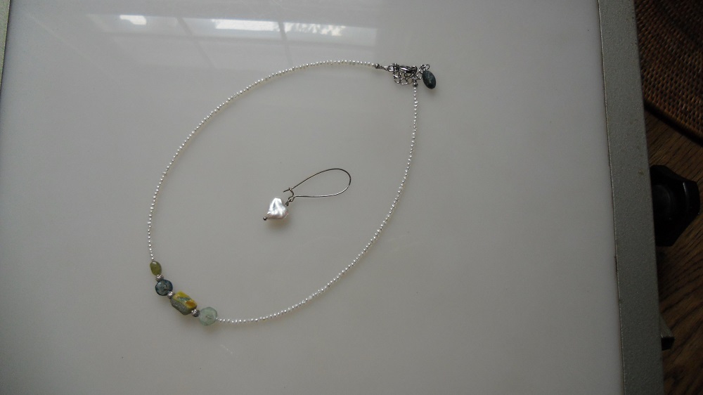 バングルのかけらを繊細な淡水真珠1・5mmでネックレスに