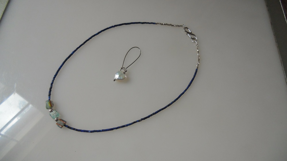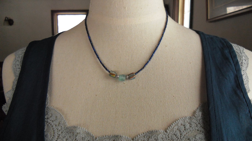 ローマ時代の鮮やかな色がついたバングル〈腕輪)のかけらのネックレス。