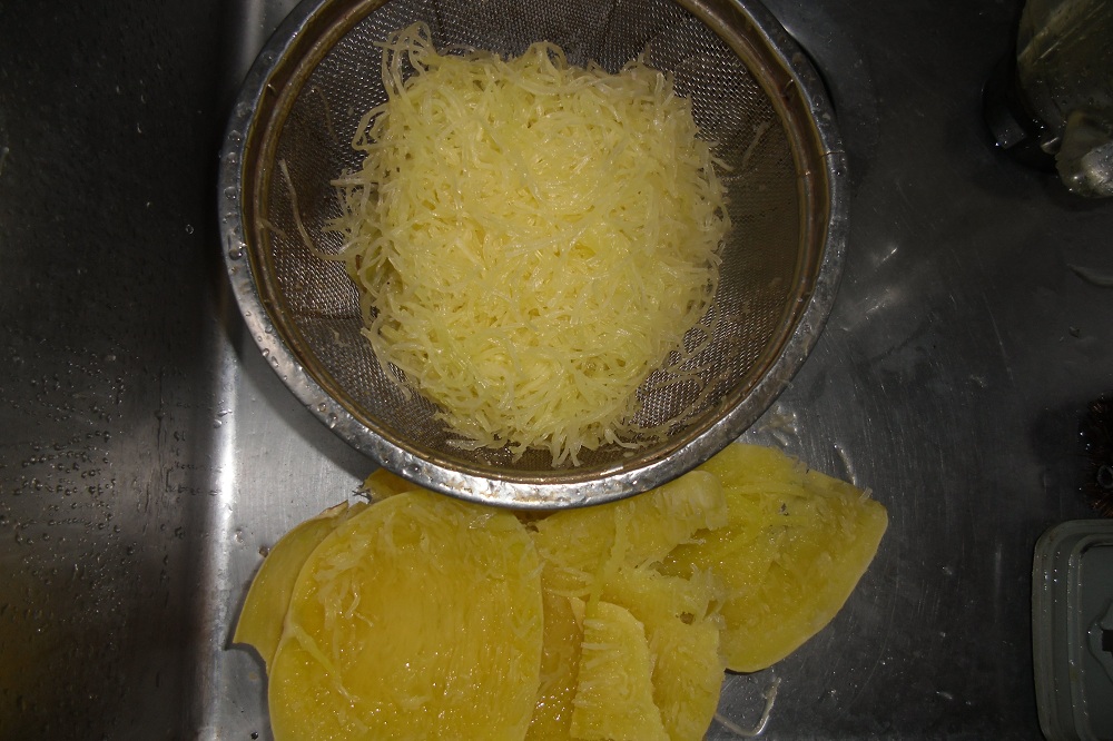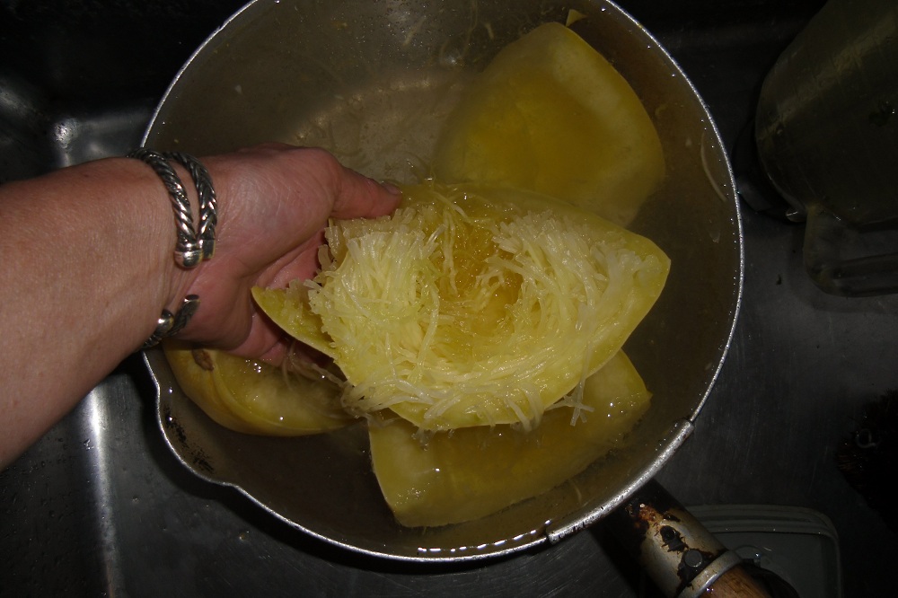 ③水にいれてさまし、手でグリグリやると面白いように、繊維が出てきます。